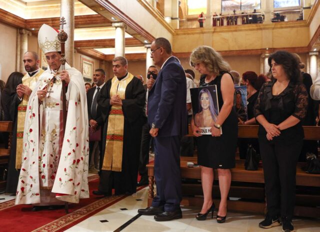 Famílias de vítimas da explosão do porto de Beirute em agosto de 2020 participam de uma missa realizada pelo patriarca maronita Bechara Boutros Al-Rai enquanto o Líbano marca o aniversário de dois anos da explosão. Imagem: Mohamed Azakir