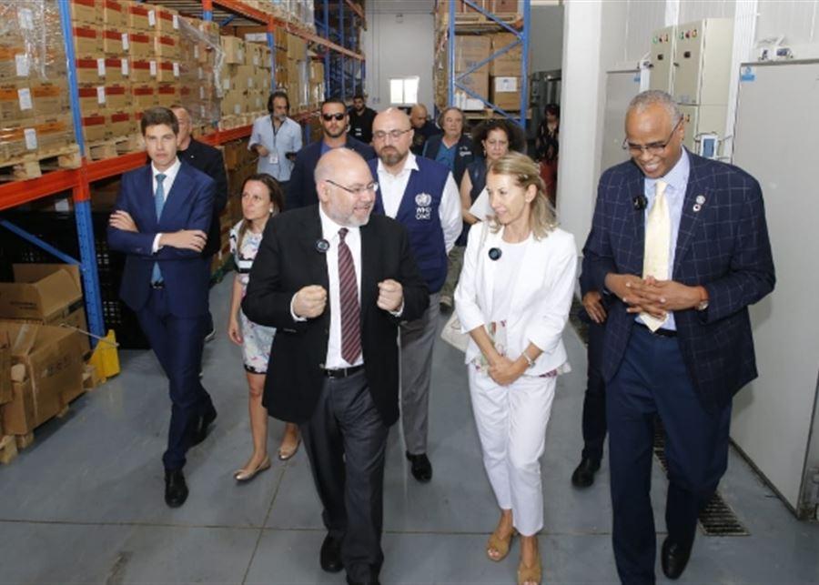 O ministro da Saúde Pública do governo interino, Firas Al-Abyad, recebeu da Embaixadora da Itália no Líbano, Nicoletta Bombardieri, uma doação de medicamentos essenciais destinados ao combate ao câncer, no Armazém Central de Medicamentos em Karantina, na presença do representante da Organização Mundial da Saúde no Líbano, Abdel Nasser Abu Bakr.