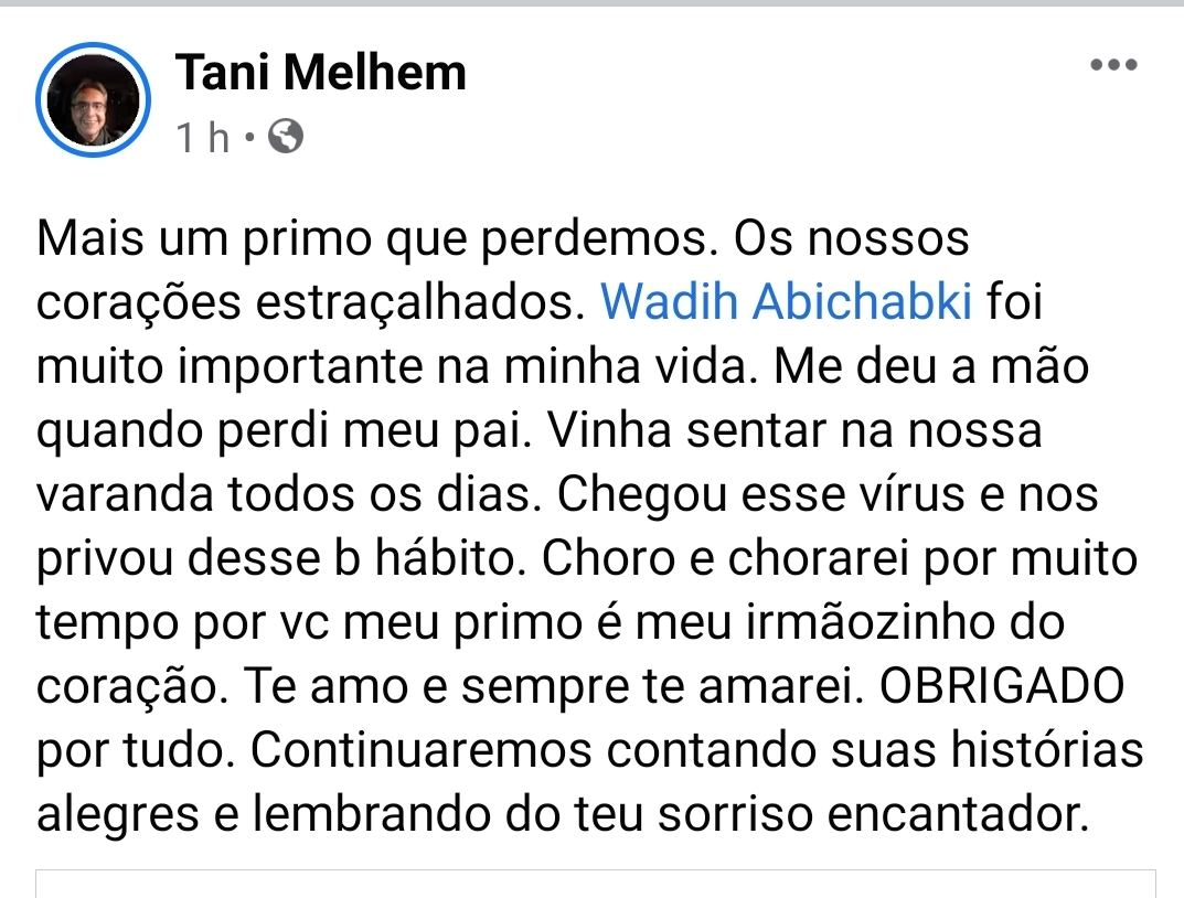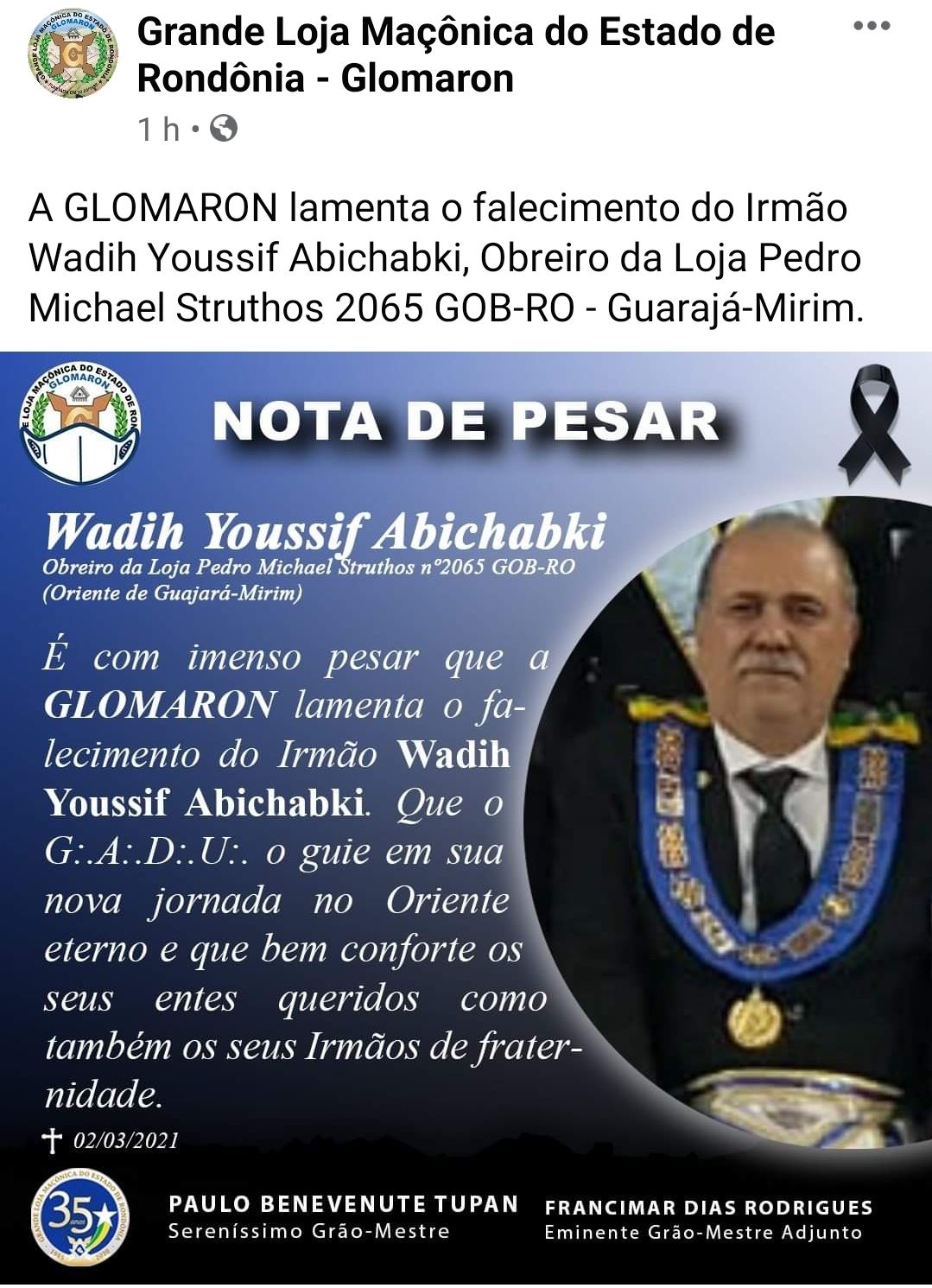 O libanês Wadih Youssif Abichabki, morreu nesta terça-feira (02), em Guajará-Mirim (RO), ele estava na Unidade de Tratamento Intensivo (UTI) e não resistiu as complicações da Covid-19.